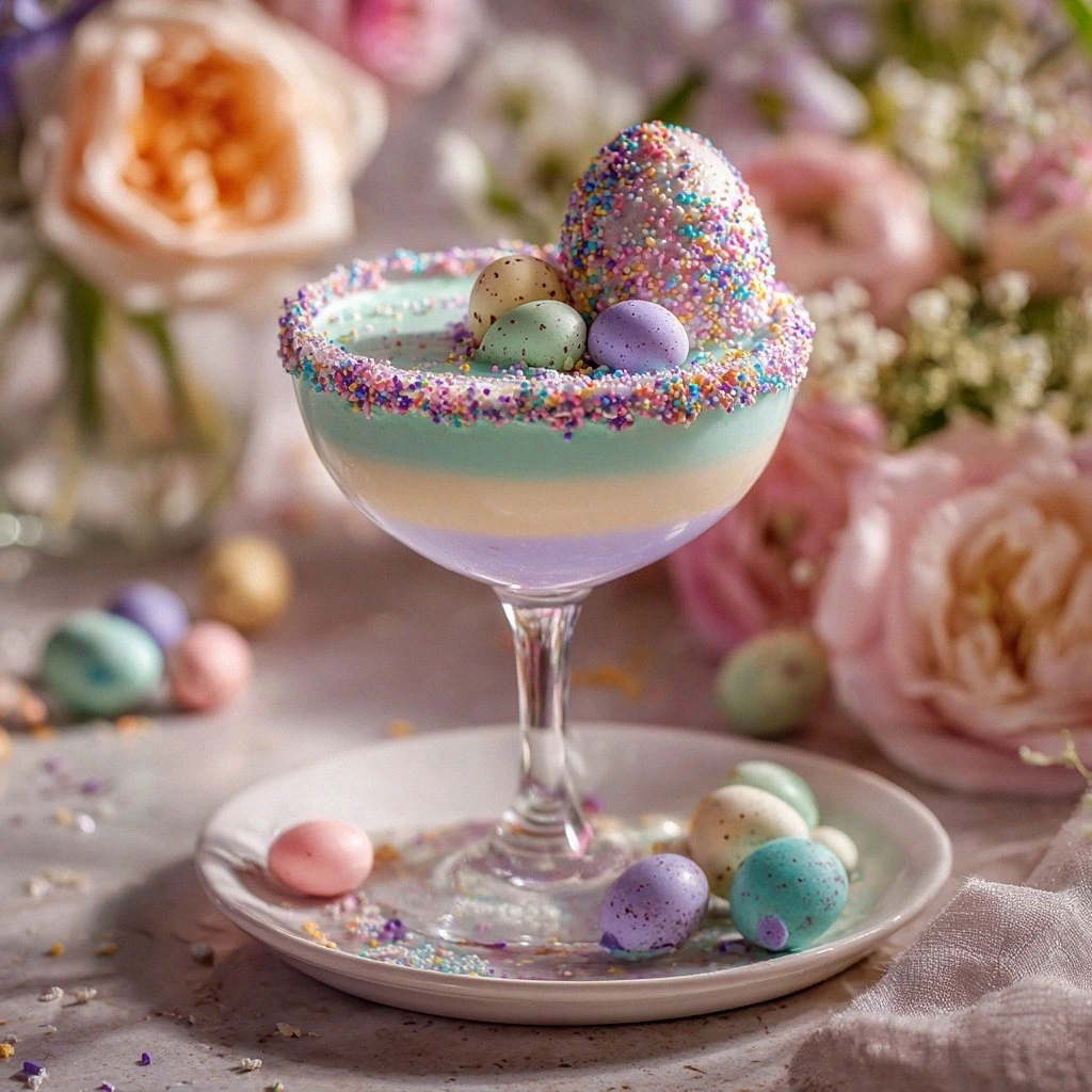 - Step 8: Garnish. Sprinkle a handful of edible pastel sprinkles or scatter a few small candy eggs around the rim. The crunch adds a playful contrast to the creamy liquid and ties the drink thematically to Easter. The garnish also provides a subtle visual cue that this is a festive treat.