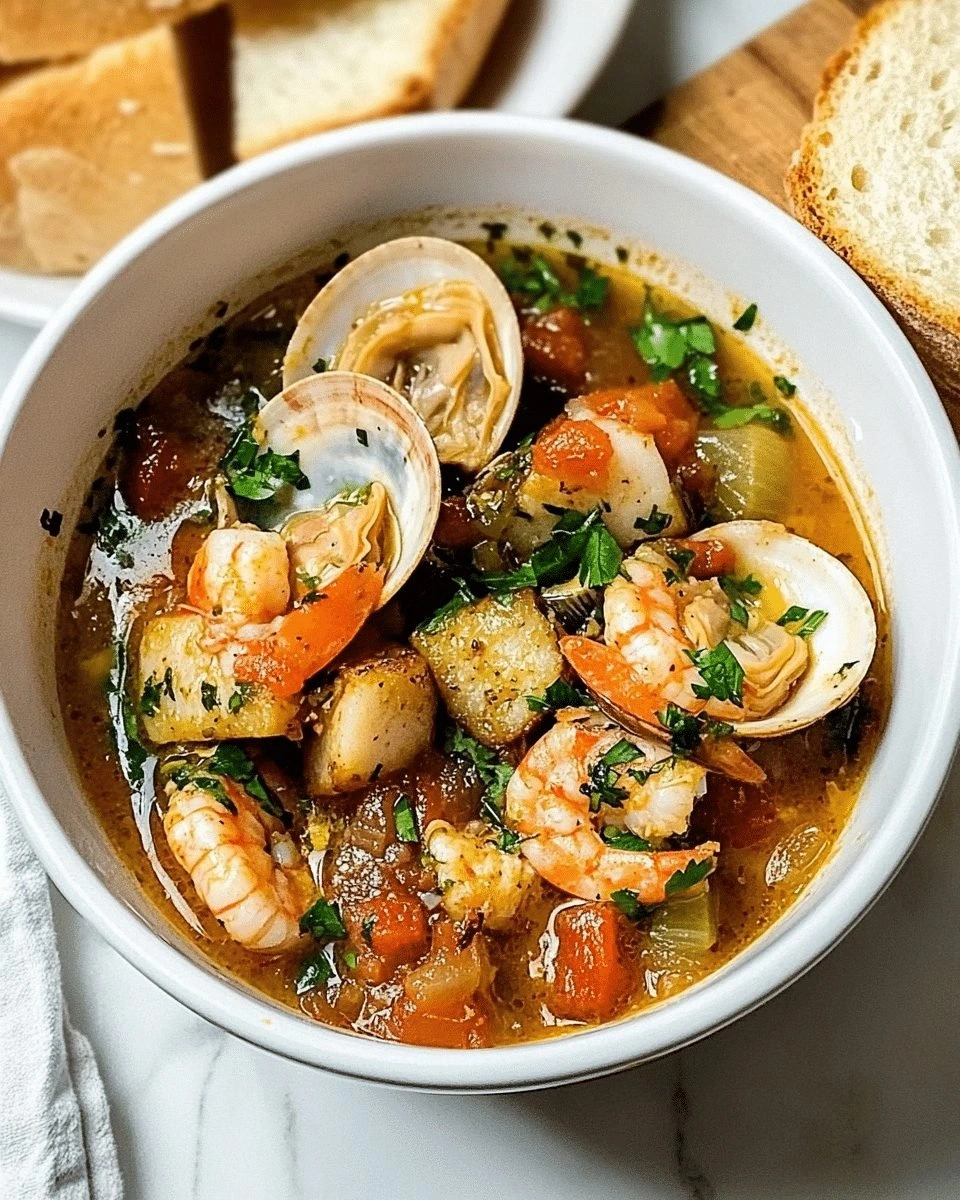 Let the stew rest for 5 minutes after cooking. This allows the flavors to mingle and the shellfish to finish cooking gently in their own steam. During this short rest, the broth thickens slightly, creating a richer mouthfeel. Skip this step and you’ll miss the subtle depth that resting imparts.